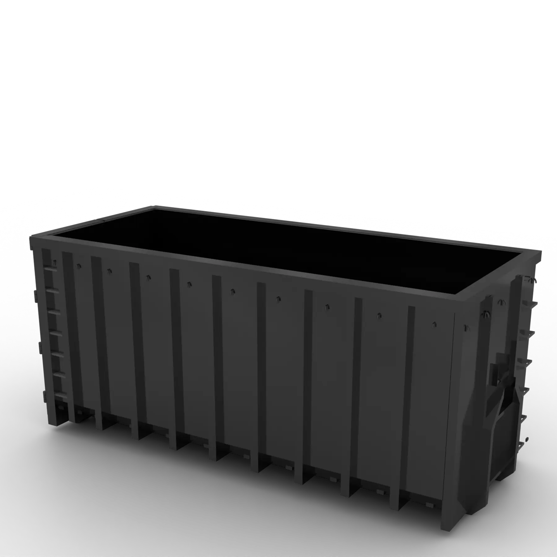 Krokcontaineren er beregnet for tungt avfall og omlasting. Containeren er ekstra avstivet med tettere profilavstand og en ekstra profil med 1/2 senter avstand i bakre felt. Kraftige hengsler med beskyttelse rundt smørenipler. Tilvalg: Vedlikeholdsfrie hjul/ruller med tette lagre, bufferklosser og forsterkning rundt låsehull. Kan leveres med manuell, vinsj, doncraft eller hydraulisk tak. Nett og presennings-løsninger. Kan leveres i flere platetykkelser og stålkvaliteter. Std. størrelser er: 12-22-30-35-38-41 og 46m³. Std.innv. lengder er: (12-35m³) 6000mm. (38m³) 6300mm og (41-46m³) 7000mm.