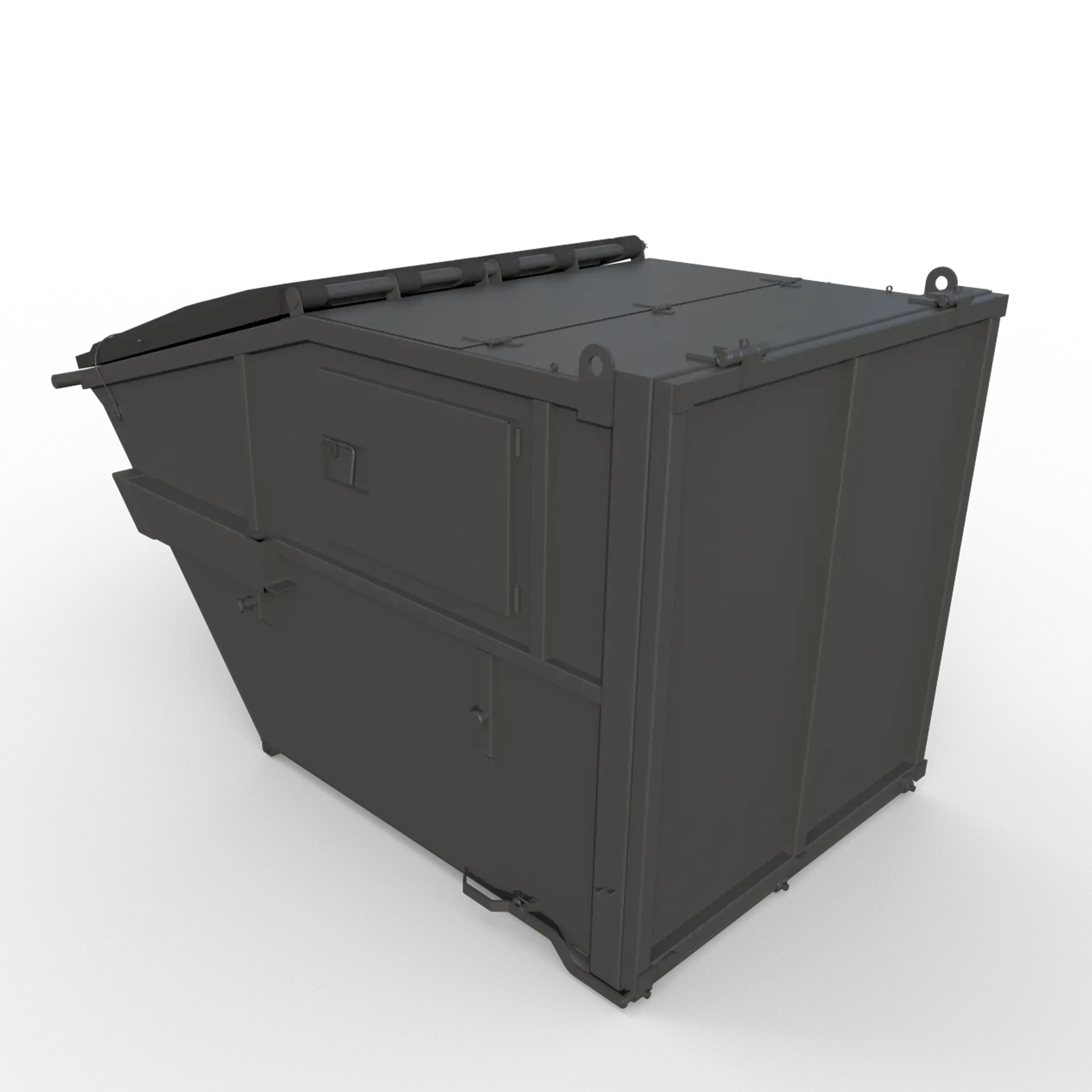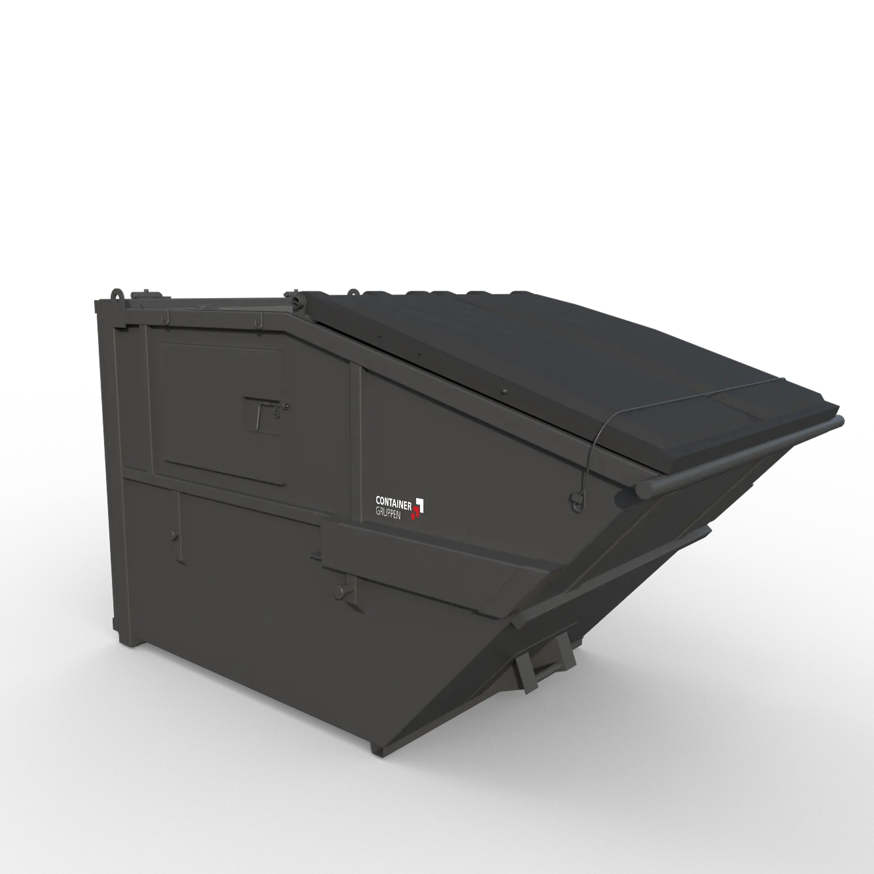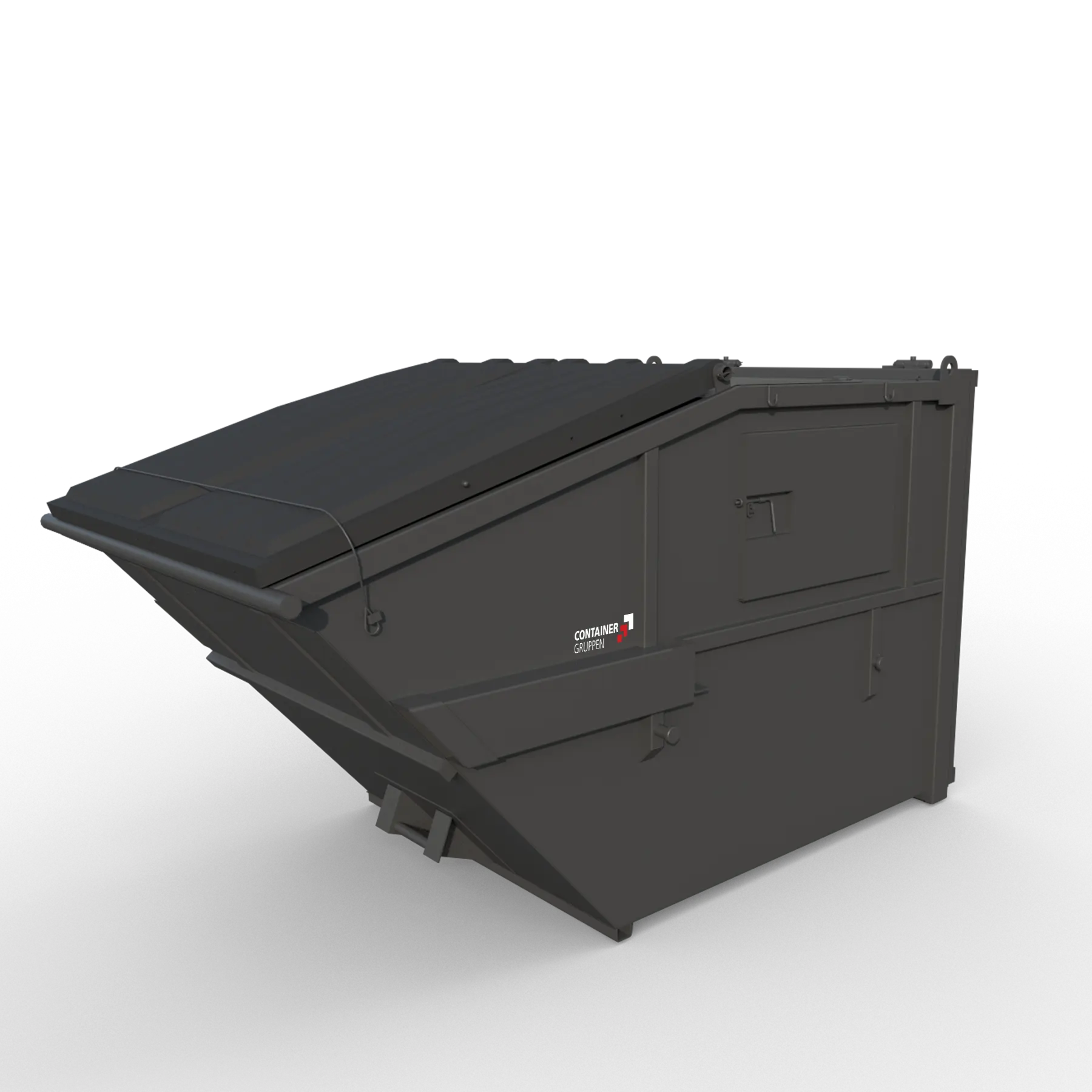 Frontlastercontainer er designet for en frontlasterbil. Lukkede containere passer til brennbart avfall, byggavfall og bølgepapp. Finnes med automatlås samt med hengende bakluke.